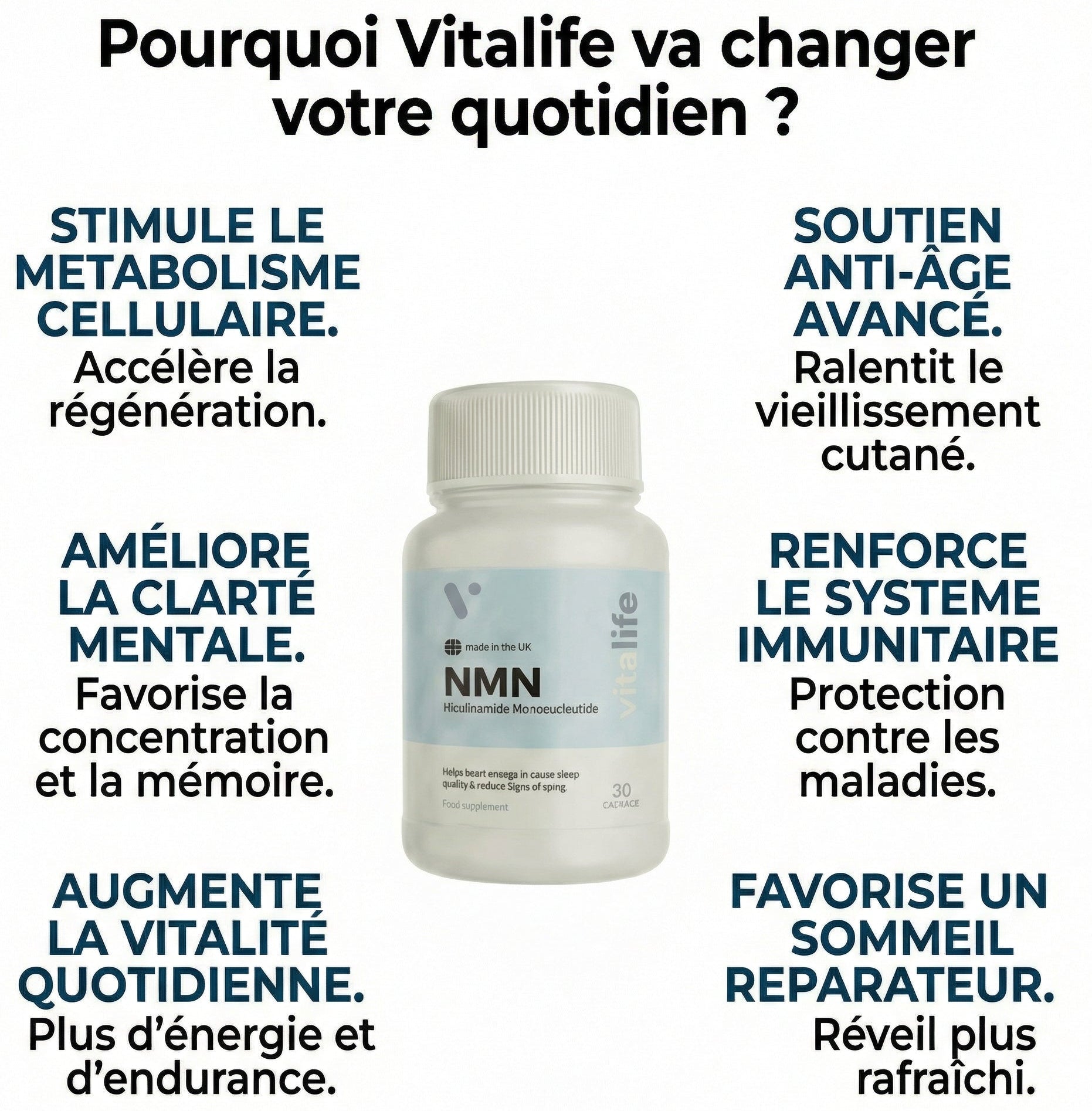 Depuis que je prends ce NMN Vitalife je fais enfin des nuits complètes, je recupère beaucoup mieux. j'ai constaté aussi plus d'énergie. Je recommande ce produit magique.